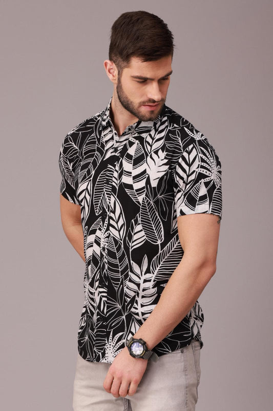 Black And White Printed Half Sleeve Shirt