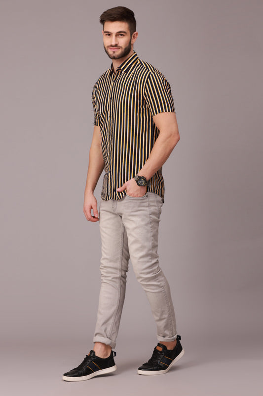 Yellow Black Stripe Half Sleeve Shirt