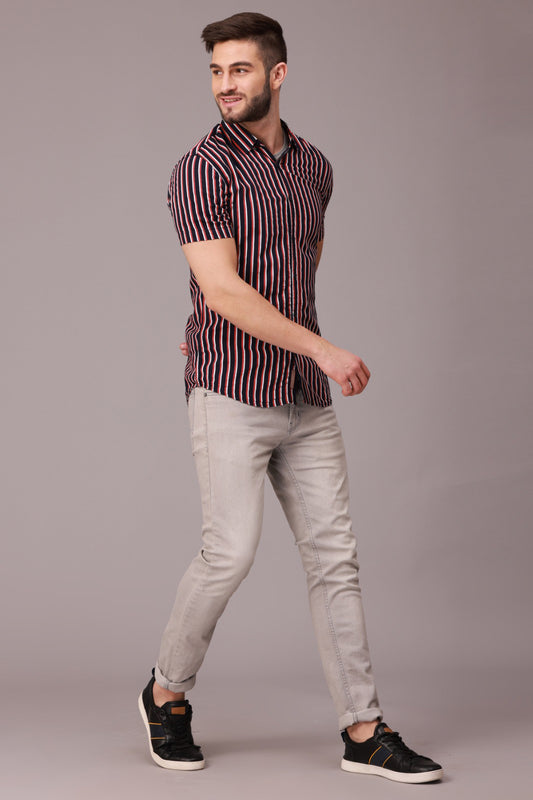 Maroon Stripe Half Sleeve Shirt