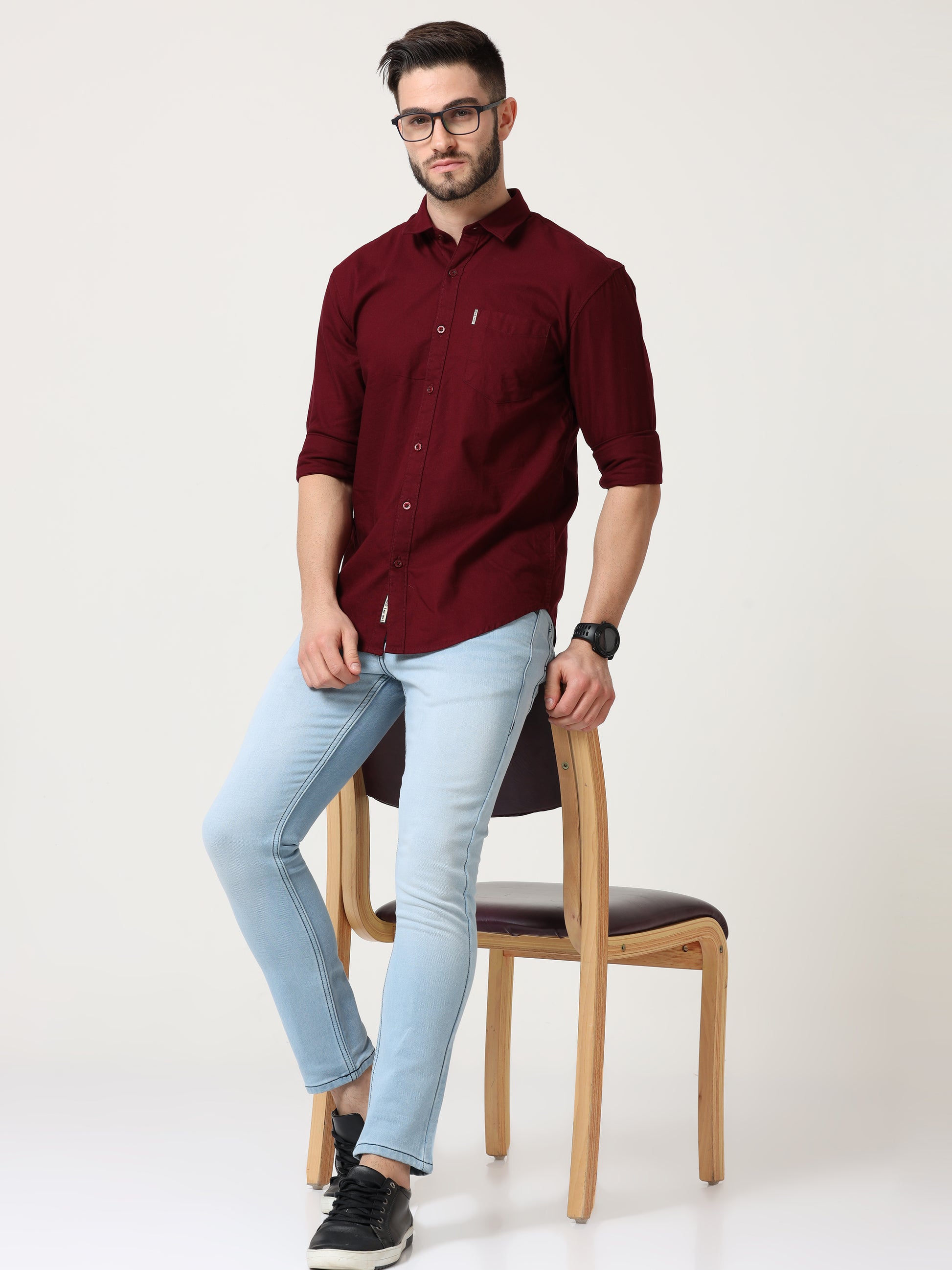 Maroon Slim Fit Full Sleeve Shirt