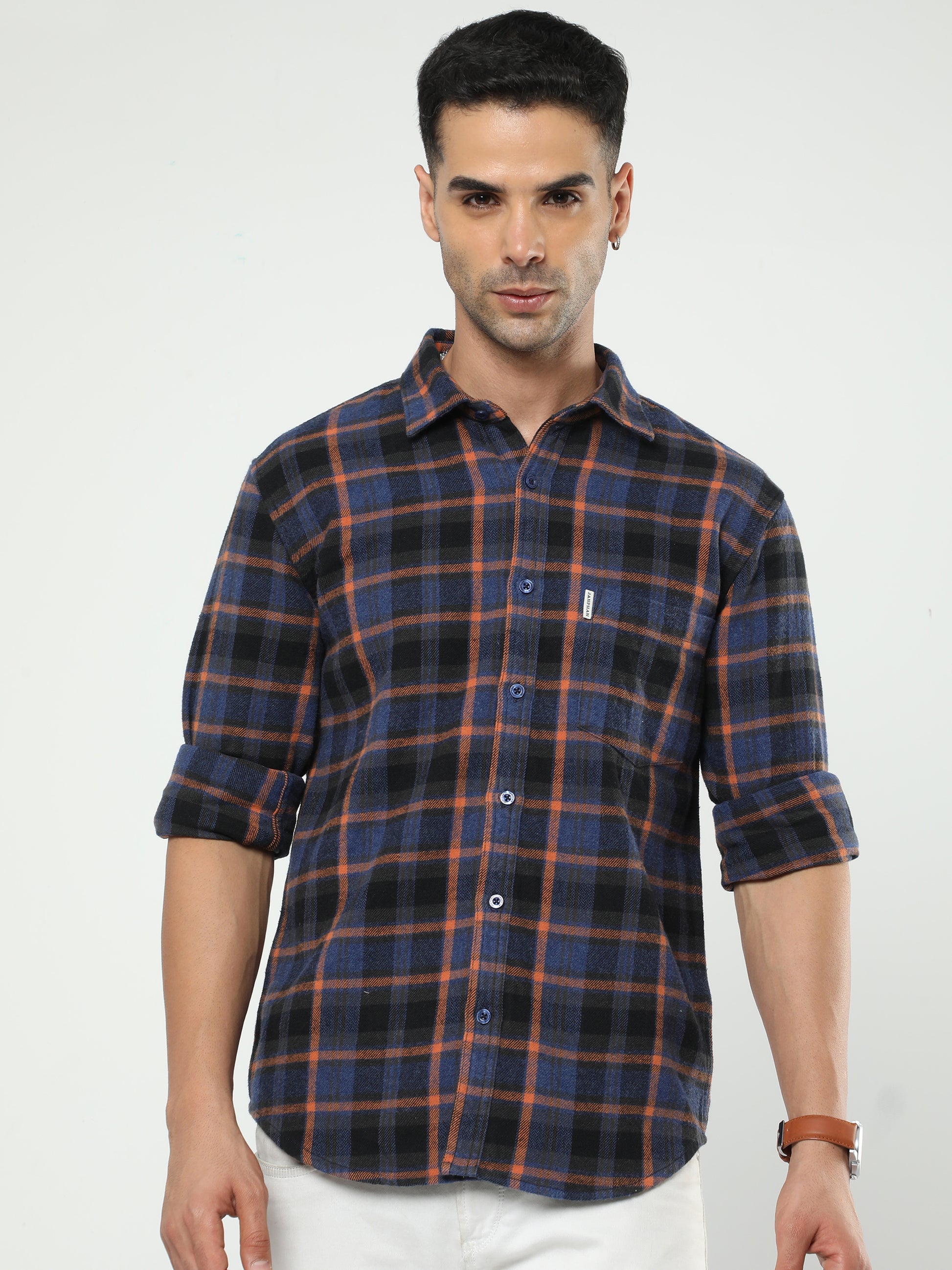 Enhance your style with this shirt. Featuring an all-over checkered pattern, patch pocket, regular collar with button-down placket, full sleeves and a slim fit. Crafted from premium quality fabric for all-day comfort. This shirt is a must-have for your wardrobe.