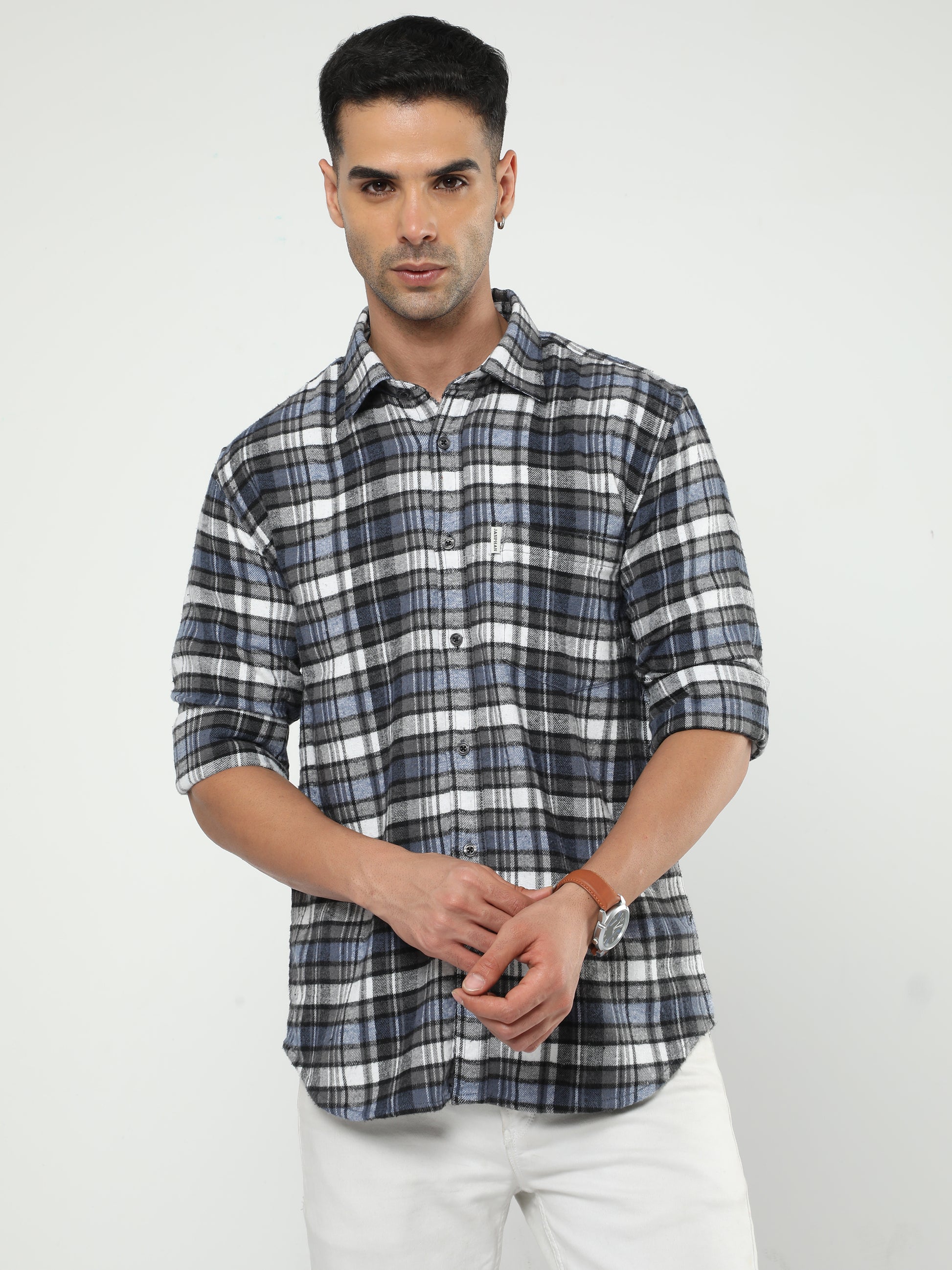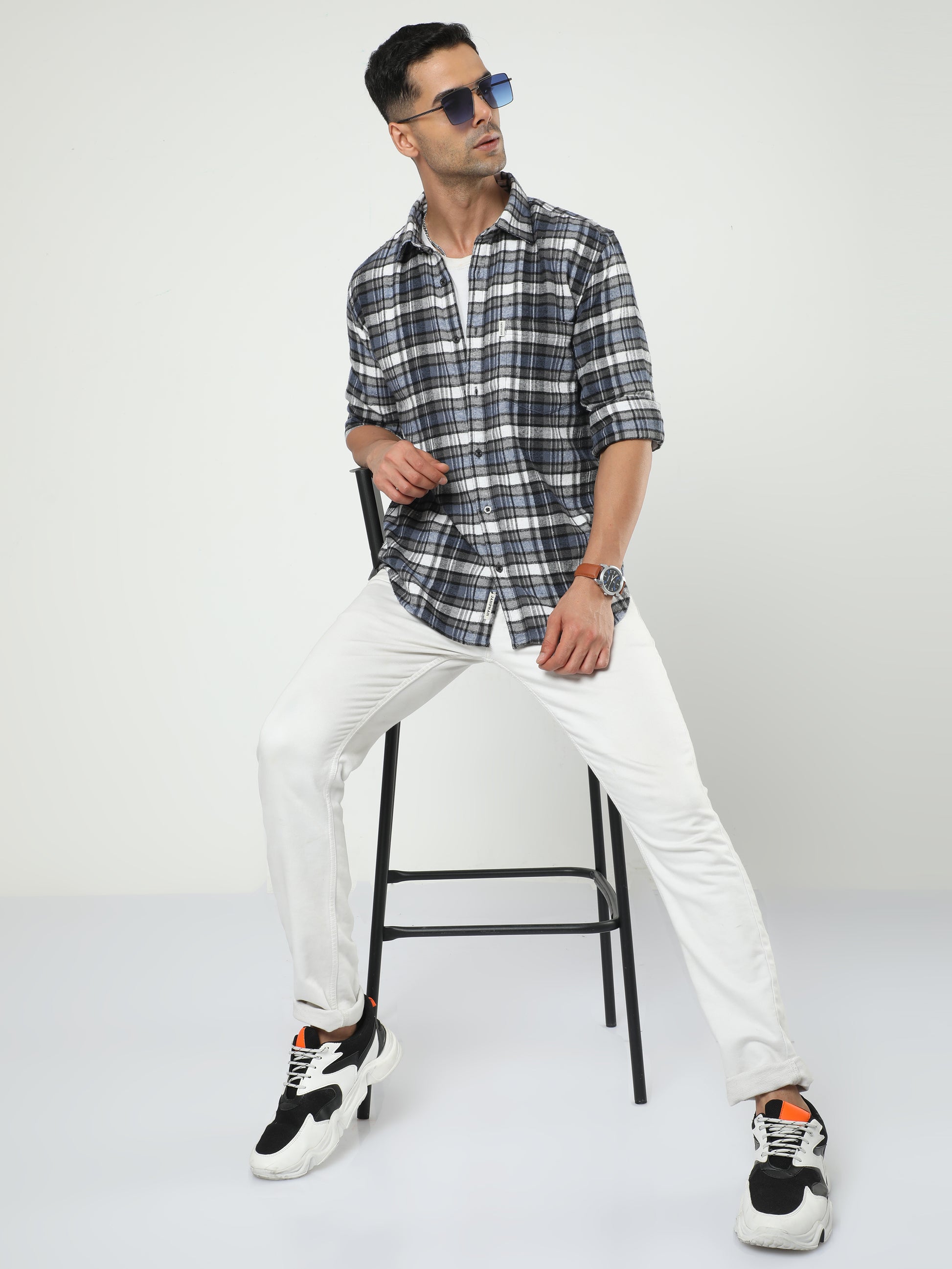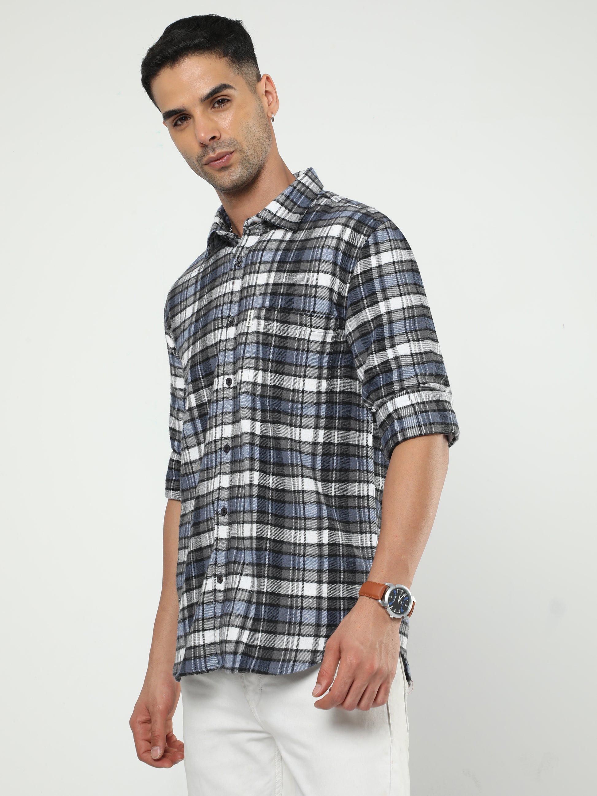 Enhance your style with this shirt. Featuring an all-over checkered pattern, patch pocket, regular collar with button-down placket, full sleeves and a slim fit. Crafted from premium quality fabric for all-day comfort. This shirt is a must-have for your wardrobe.
